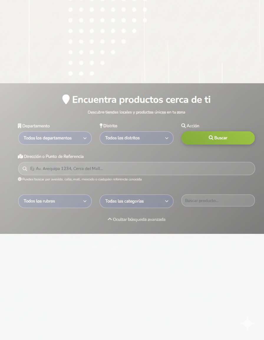 Con cobertura a nivel nacional, integramos tecnología de geolocalización, sistemas de reseñas y herramientas de búsqueda avanzada para que los negocios en galerías comerciales y ubicaciones menos transitadas tengan las mismas oportunidades de crecimiento que aquellos en zonas privilegiadas. Juntos construimos un mercado más justo, accesible e inclusivo para todos los peruanos.
